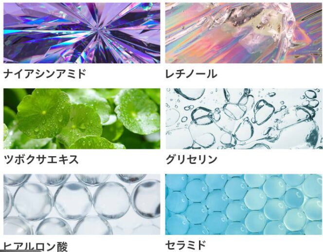 ・ナイアシンアミド・レチノール・ペプチドなどの攻め成分